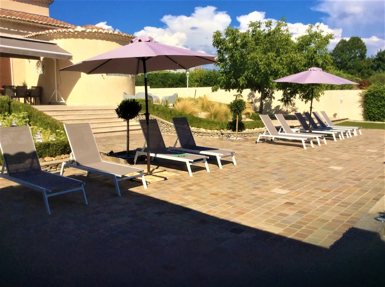 Draußen erwartet Sie ein großer, umzäunter Garten (2420 m²), ein sicherer, beheizter Swimmingpool (12 x 6 m), eine Boulebahn und eine Sommerküche mit Grillplatte. Zehn Sonnenliegen und eine Sitzecke laden zum Entspannen unter der provenzalischen Sonne ein.