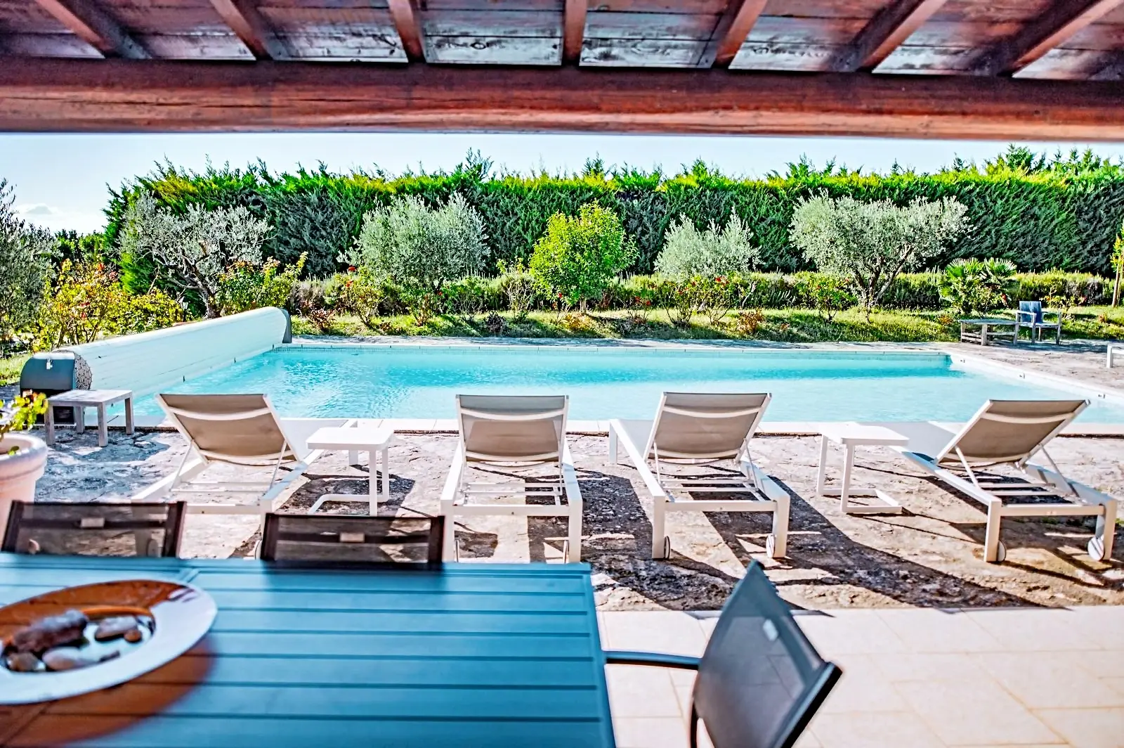 Das möblierte Poolhaus ermöglicht es Ihnen, Mahlzeiten und Abende mit Blick auf ein außergewöhnliches Panorama zu genießen.