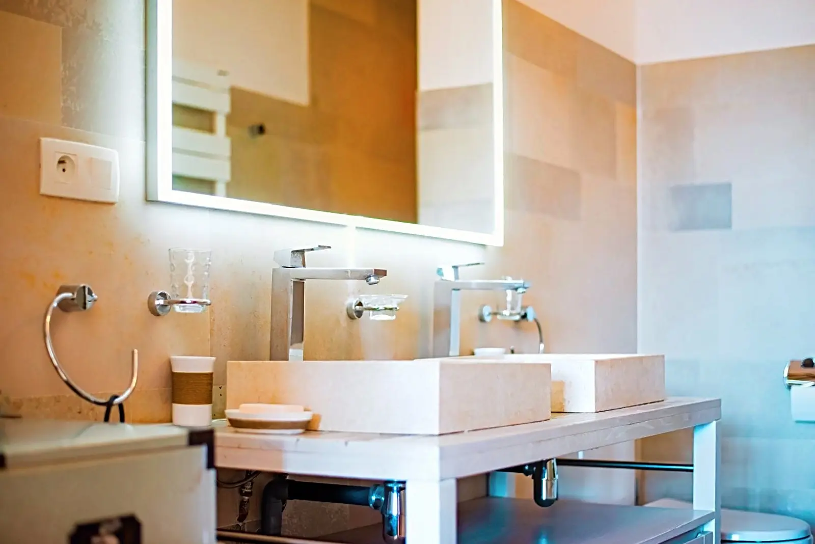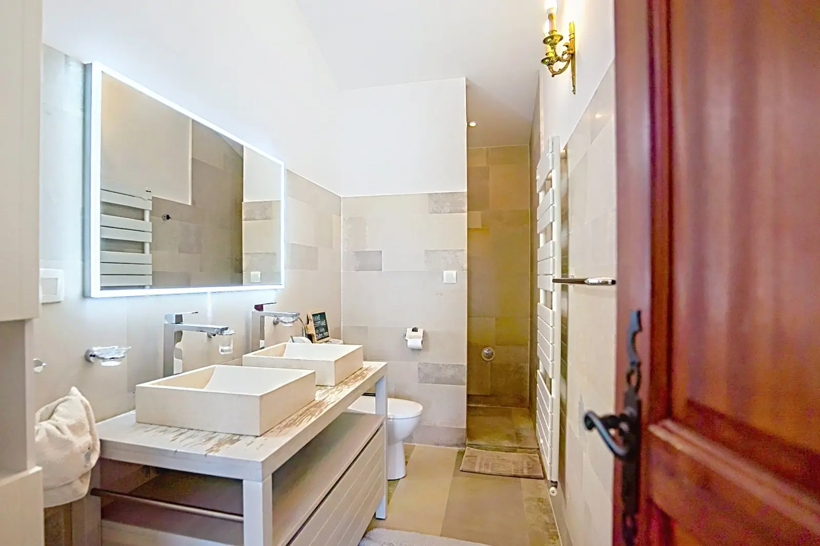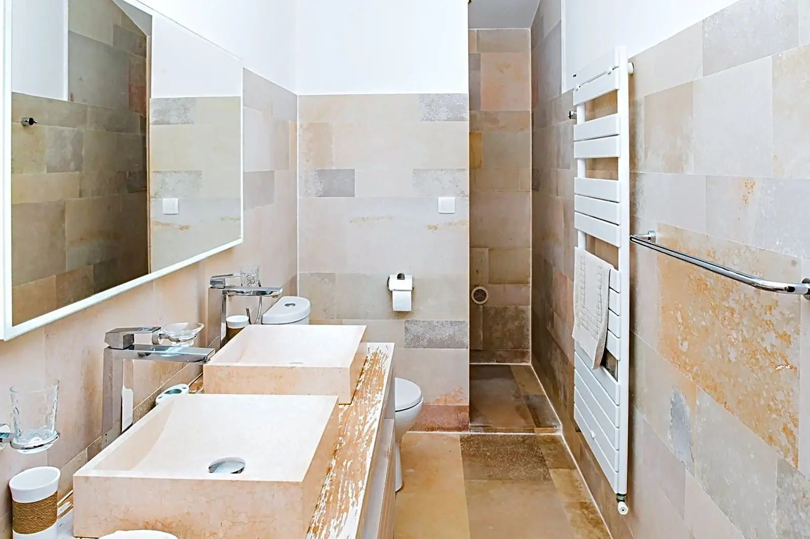 - BADEZIMMER mit Dusche, Doppelwaschbecken, WC und Handtuchwärmer