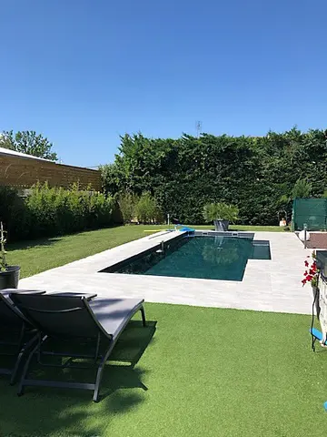 Privater Swimmingpool mit den Maßen 9 m x 4 m, mit einem 1,45 m tiefen, ebenen Boden, Chlorbehandlung und Alarmanlage