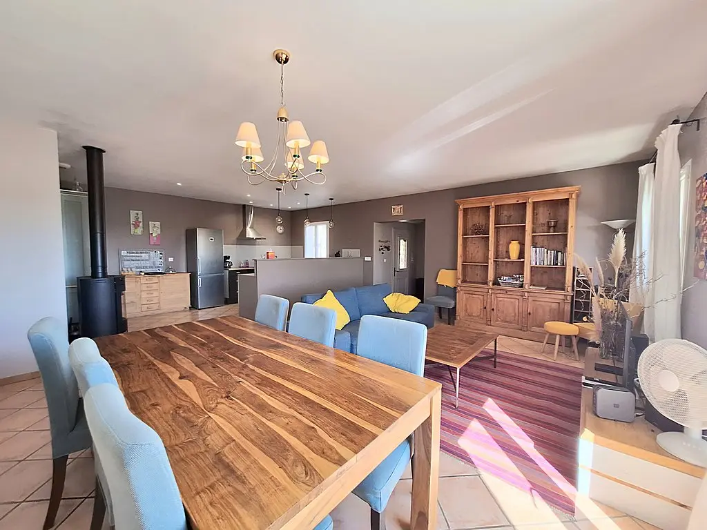 Großzügiges Wohnzimmer mit Sitzecke, Fernseher und großem Esstisch