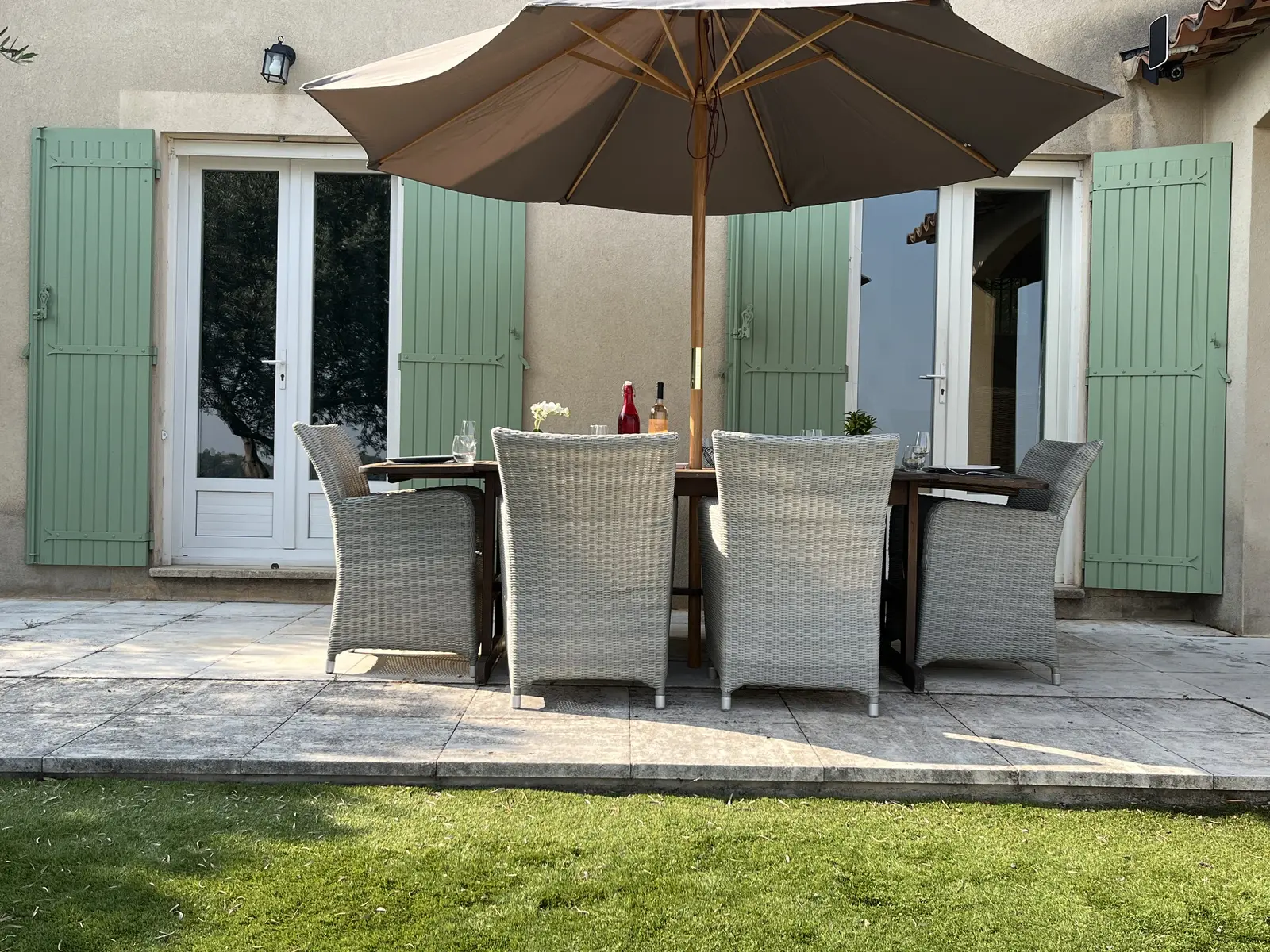 Auf den Höhen eines ruhigen Weilers in Paradou, nur einen Steinwurf von Les Baux-de-Provence und den Alpilles entfernt, bietet dieses charmante Haus einen atemberaubenden Panoramablick. Mit seinen 4 Schlafzimmern und 3 Bädern bietet es bequem Platz für bis zu 8 Personen. Die Inneneinrichtung vereint Authentizität und modernen Komfort und verfügt über eine voll ausgestattete Küche, ein Wohnzimmer mit Kamin, Klimaanlage und Glasfaser-WLAN. Das große, umzäunte Grundstück von 850 m² verfügt über einen sicheren privaten Swimmingpool, der von Mai bis Oktober ideal ist. Genießen Sie eine schattige Terrasse, einen Innenhof und einen Grill für gesellige Momente im Freien. Privatparkplätze, eine Ladestation für Elektroautos und eine Garage mit Fahrrädern sorgen für Ihre Ruhe. Babyausstattung, Waschküche und Fernseher vervollständigen diese familienfreundliche Umgebung. Ein Hund ist auf Anfrage willkommen. Der perfekte provenzalische Kurzurlaub erwartet Sie!