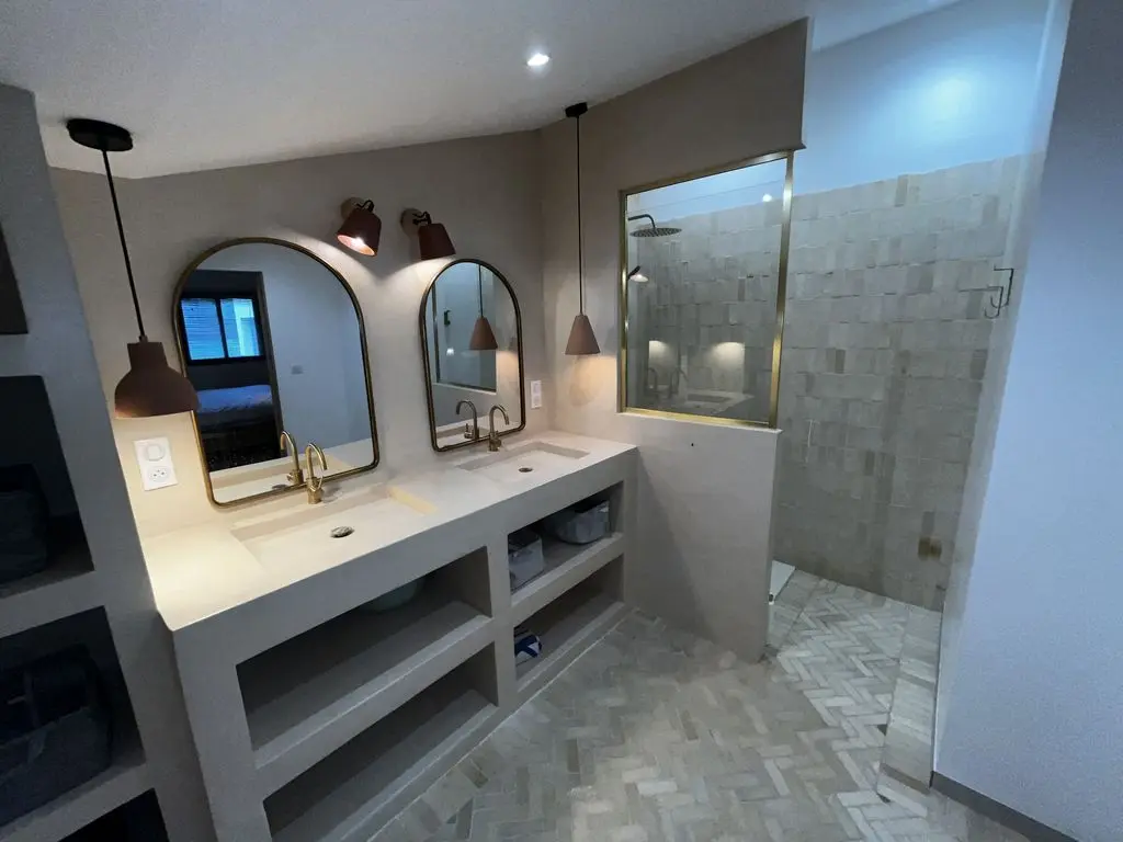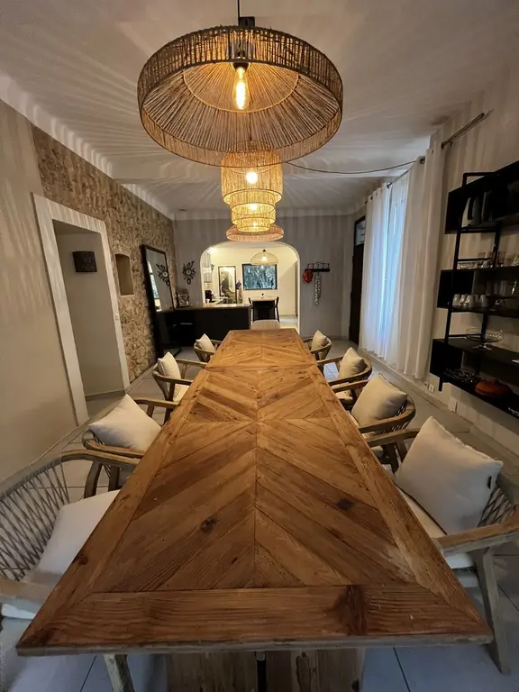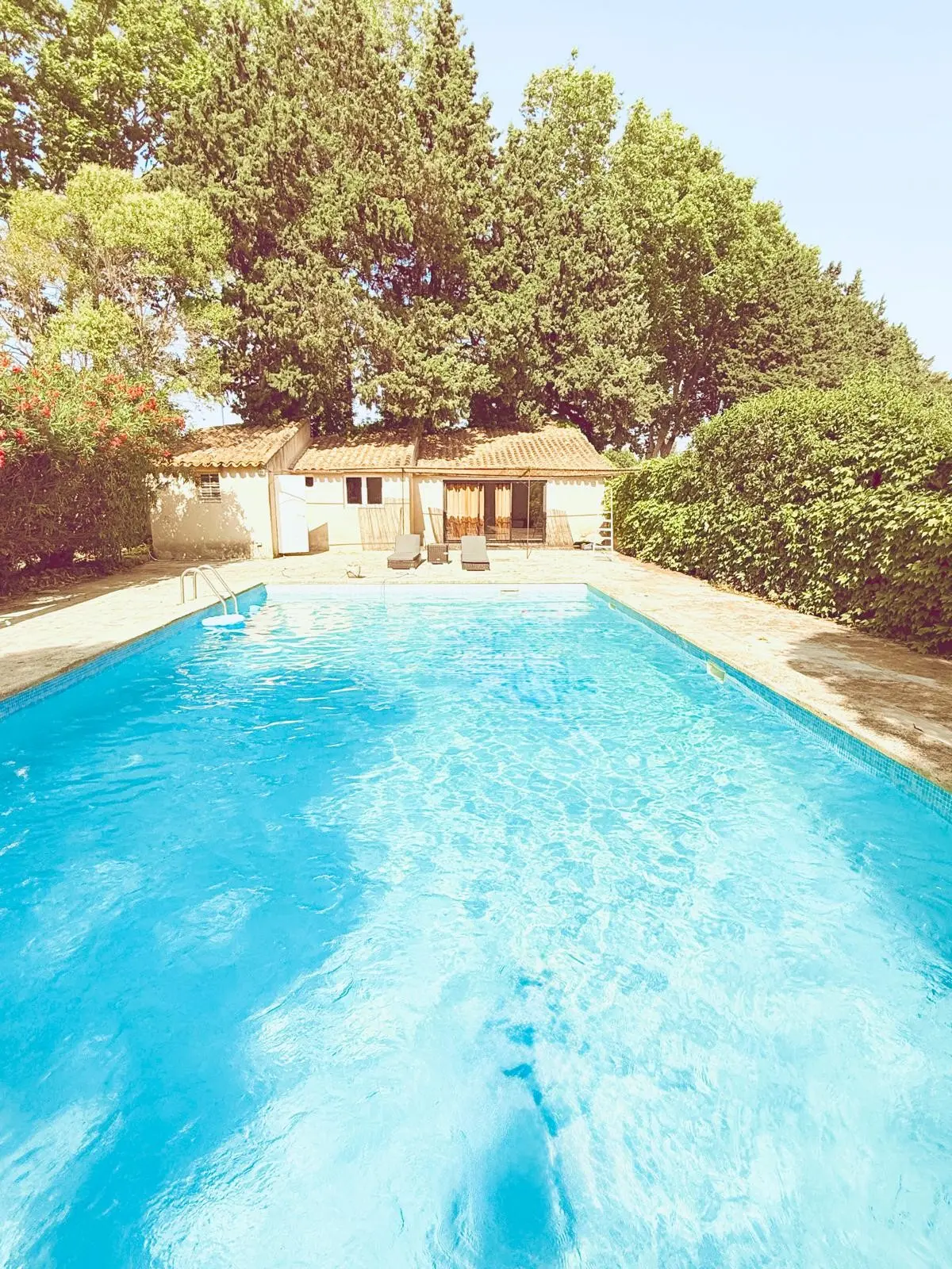 Unweit von Cavaillon, nur einen Katzensprung vom Regionalen Naturpark Luberon und L'Isle-sur-la-Sorgue entfernt, bietet dieses charmante Landhaus Platz für 8 bis 10 Personen auf einem 4.500 m² großen, bewaldeten und absolut privaten Grundstück. Es verfügt über zwei Wohnzimmer, eines davon klimatisiert, eine geräumige offene Küche und zwei Master-Suiten mit ebenerdigen Duschen. Im Obergeschoss befinden sich drei weitere Schlafzimmer und ein Badezimmer. Draußen erwarten Sie ein großer, umzäunter Swimmingpool (12 x 6 m), ein voll ausgestattetes Poolhaus und zahlreiche Entspannungsbereiche. Hochwertige Annehmlichkeiten (Starlink-WLAN, TV, Grill/Plancha, Tischtennisplatte etc.) sorgen für optimalen Komfort. Sichere Parkplätze für mehrere Fahrzeuge sind vorhanden. Ein idealer Rückzugsort für einen erholsamen Urlaub in der Provence mit Familie oder Freunden.