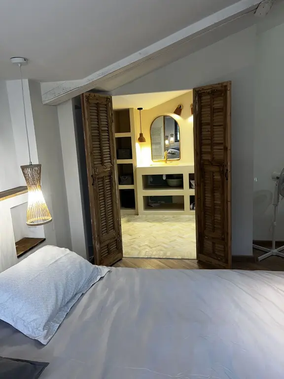 ZIMMER NR. 2 (Master-Suite mit Klimaanlage) mit 1 sehr großen Doppelbett (200x200cm), einem Fernseher und einem Badezimmer (1 Waschbecken, 1 begehbare Dusche, 1 Toilette)