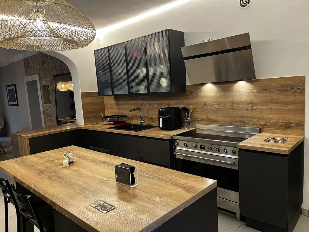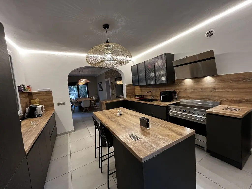 Voll ausgestattete Küche mit Zugang zum Esszimmer