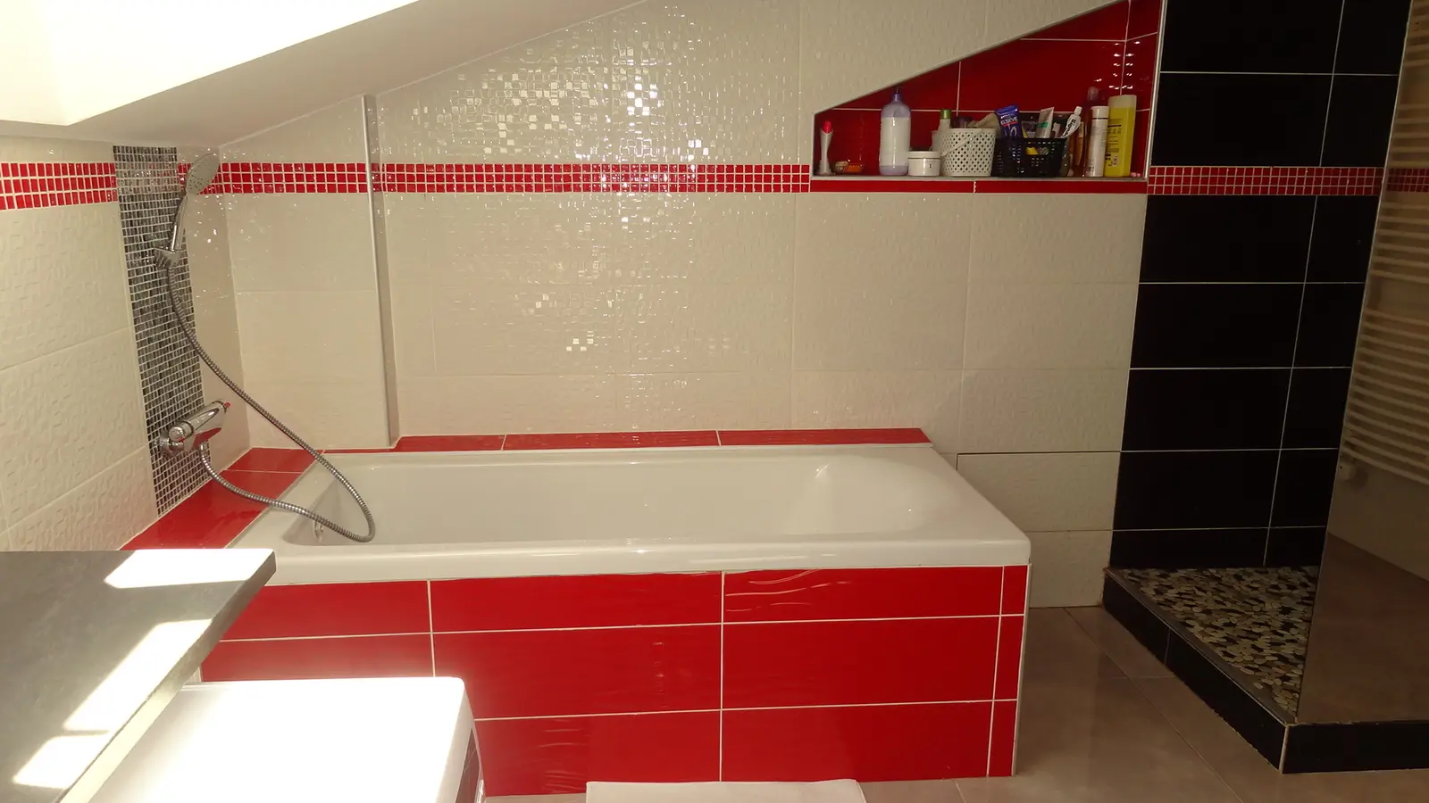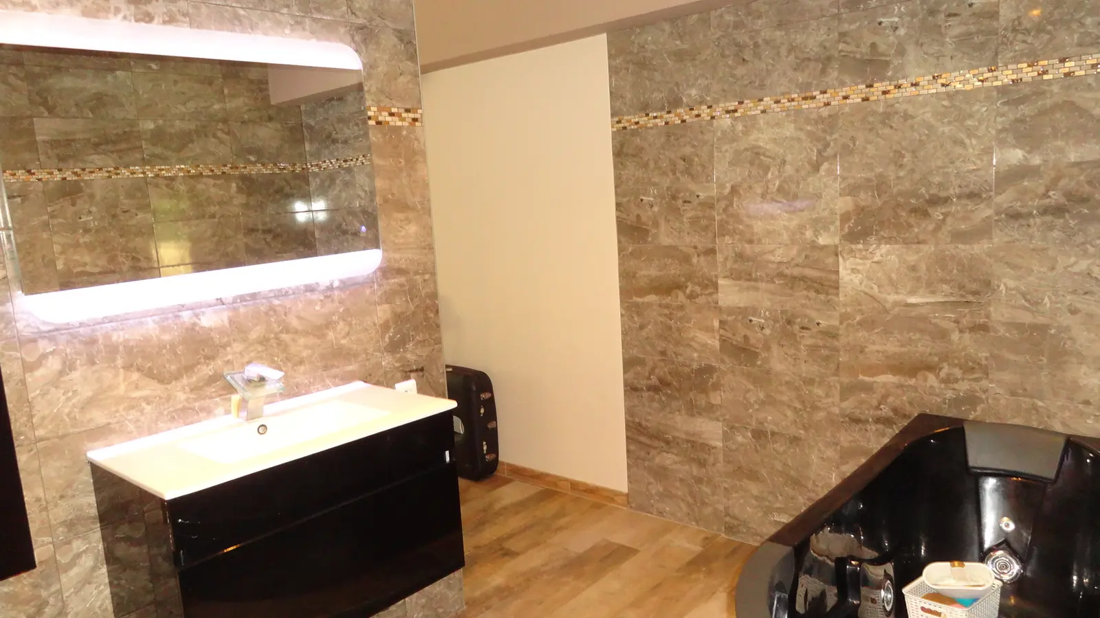 Badezimmer (mit 2 Waschbecken, 1 Badewanne, 1 Dusche)