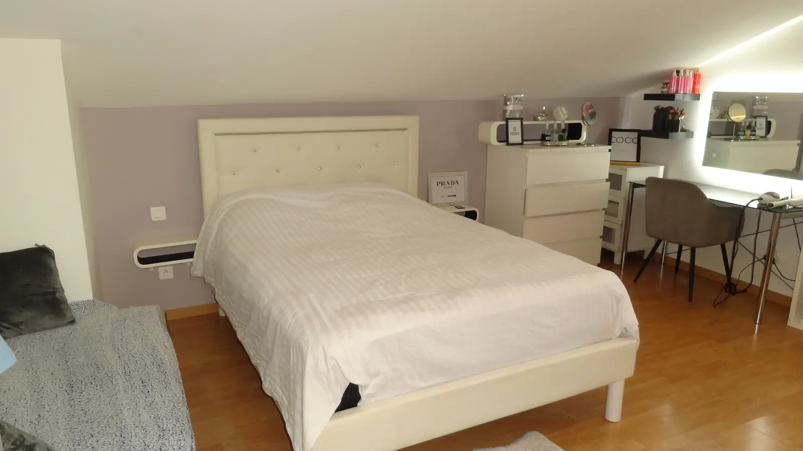 Schlafzimmer 5, Kinderzimmer mit Einzelbett für Kinder auf dem Zwischengeschoss (Rutsche) und Matratze für zusätzliches Kinderbett (auf Anfrage), Klimaanlage, Abstellraum