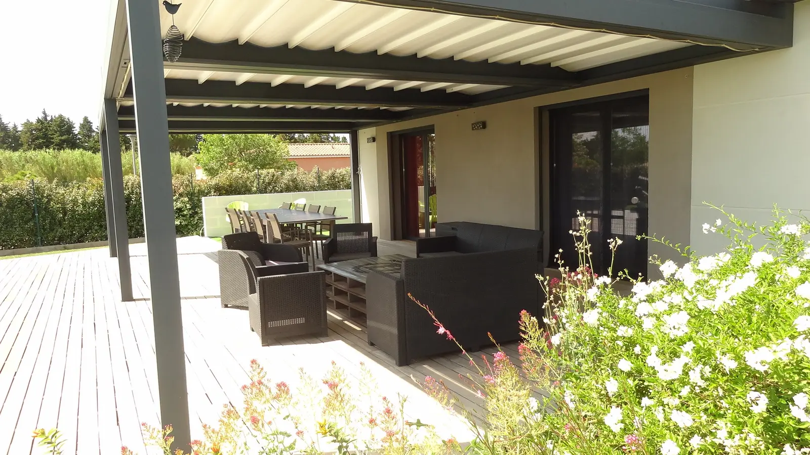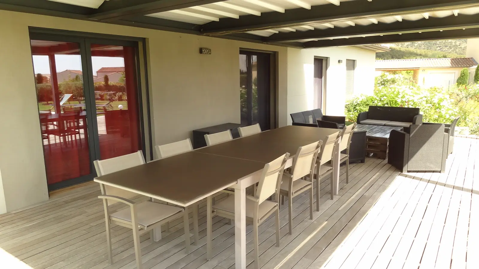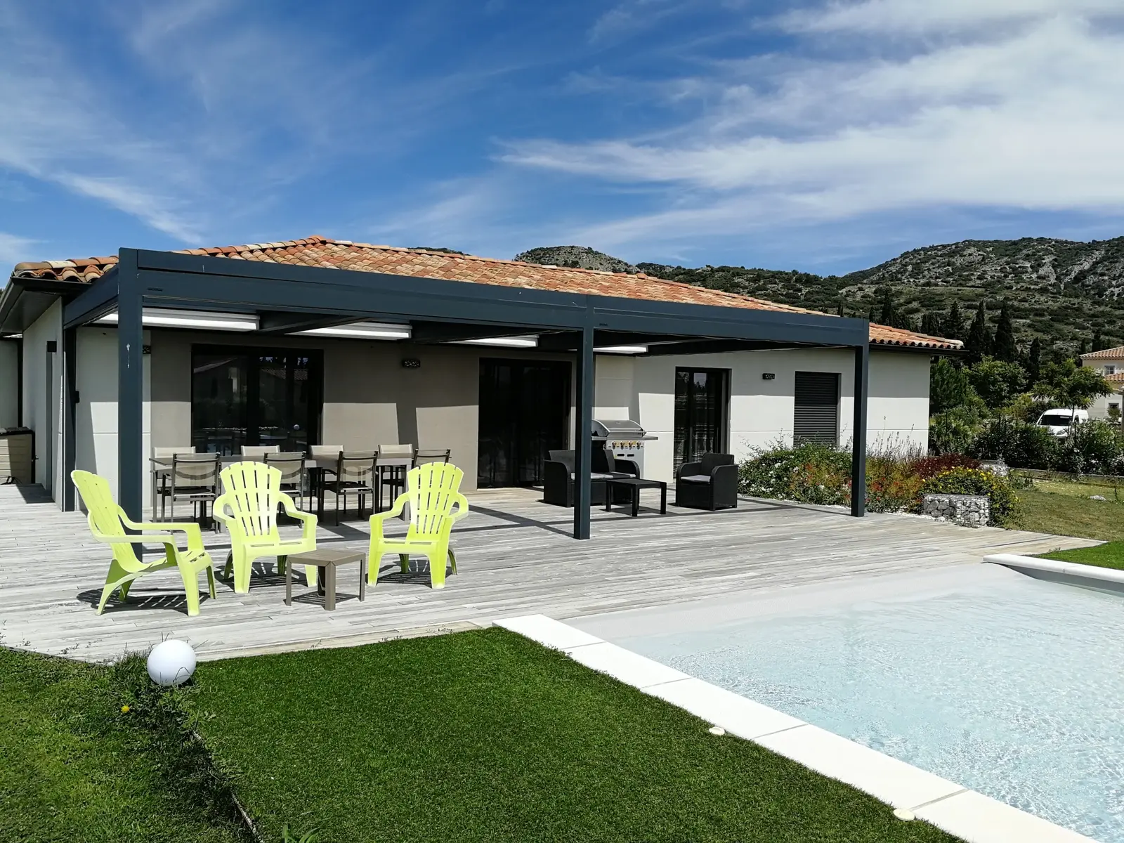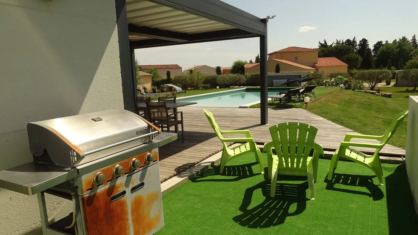 At the foot of the LUBERON, very pleasant single-story villa of approximately 160 m² with a beautiful private swimming pool of 12m x 5m on a large wooded and landscaped plot of 2500 m²; This beautiful, completely independent villa is designed to comfortably accommodate up to 8 people and has 4 bedrooms, 2 bathrooms, a living/dining room, a fully equipped American kitchen; It has a cooling floor and air conditioning in the living room.