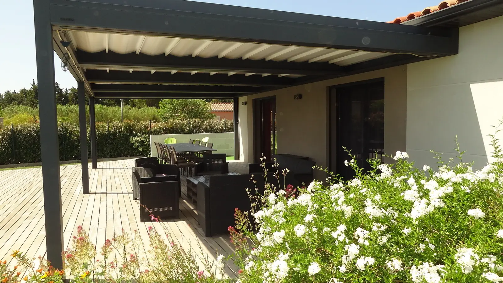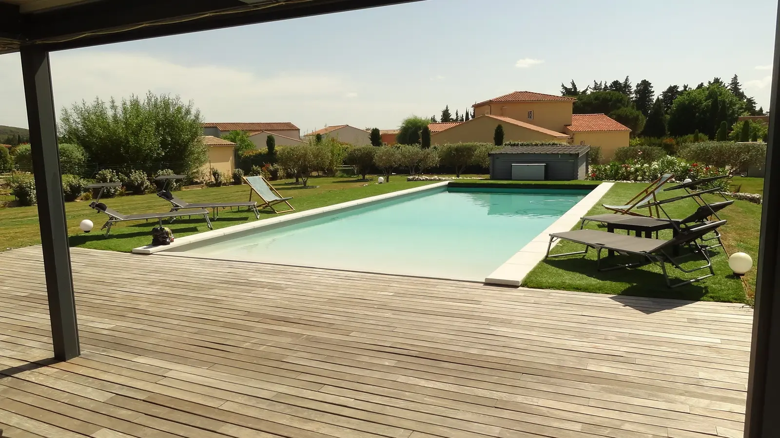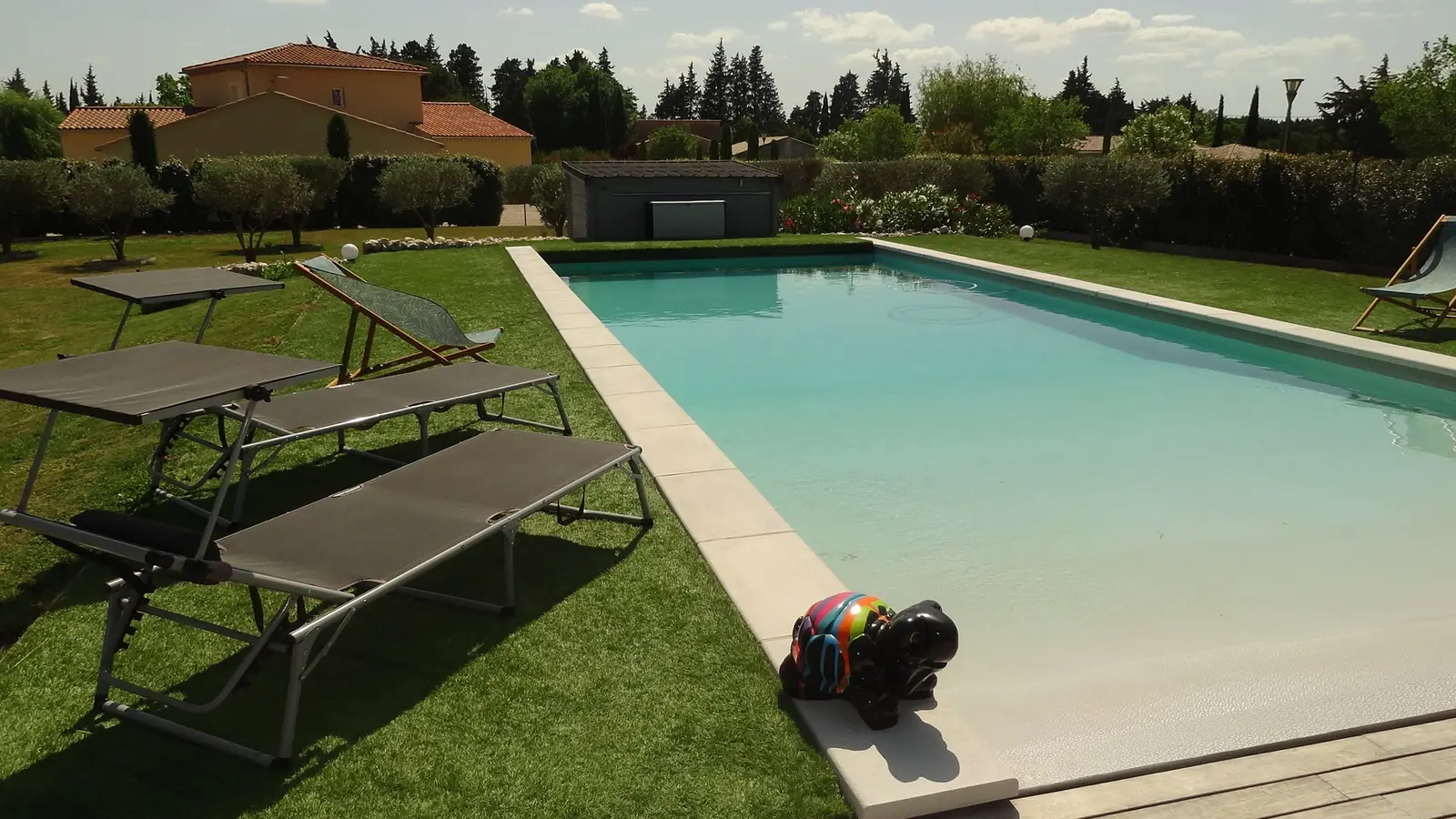 Swimming pool 12m x 5m - depth 0 to 1.4m (flat bottom) - Chlorine treatment - automatic safety shutter