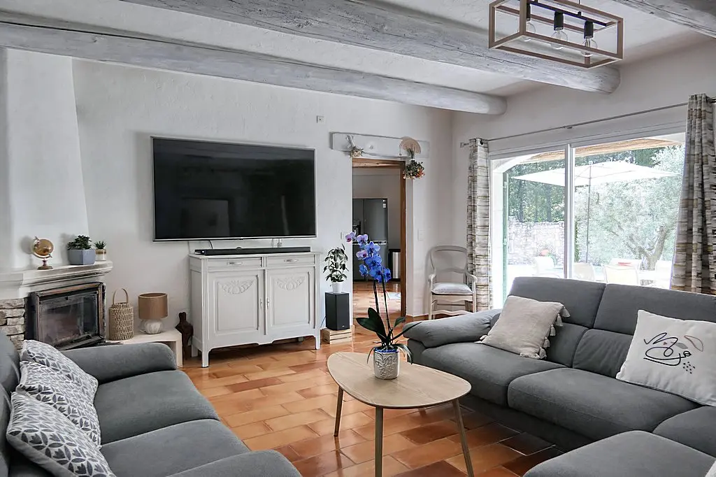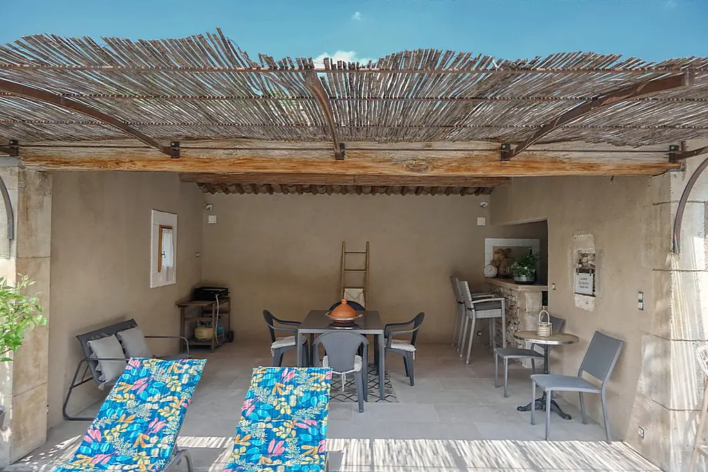 Discover our magnificent 190 m² house in Eygalières, ideal for a relaxing holiday in Provence. With its enclosed 2000 m² grounds, you'll enjoy a sunny terrace and a private 9x4 m saltwater swimming pool secured by an alarm. Inside, you'll find a fully equipped open-plan kitchen, a cozy living room with Netflix access, and three air-conditioned bedrooms for optimal comfort. The house has two modern bathrooms, perfect for accommodating up to six people. A pool house with a refrigerator and griddle completes this dream outdoor space. Private parking for three to four vehicles and a pétanque court for convivial moments. Book now with Serenity-Provence for an unforgettable getaway!