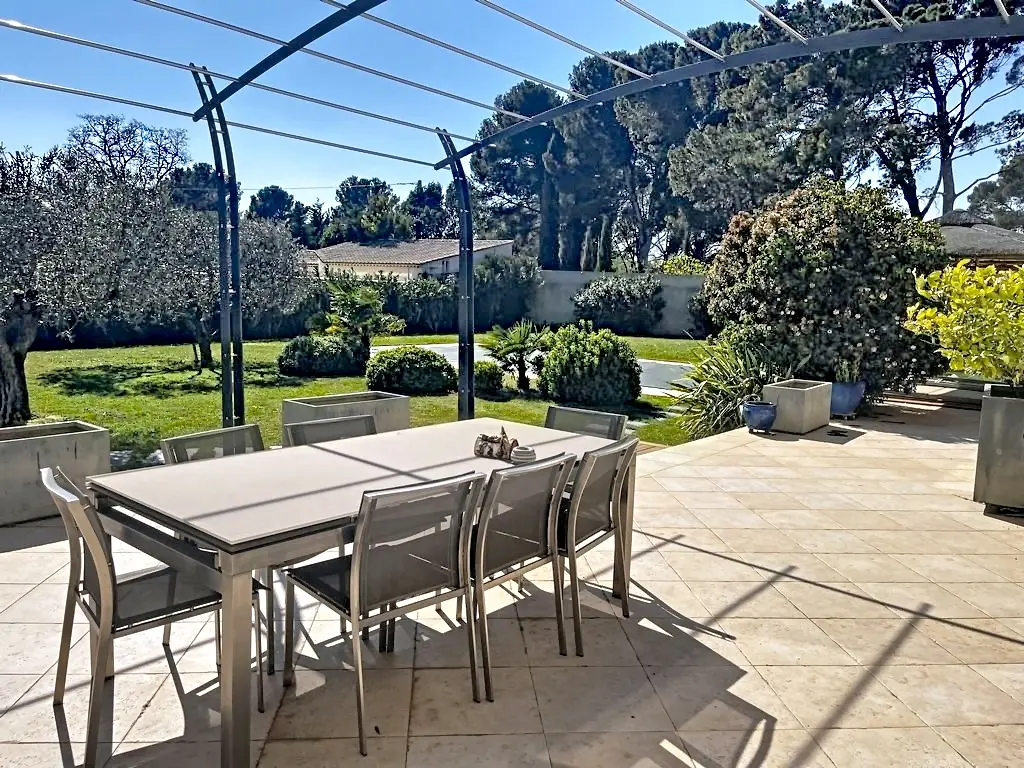 The terrace furnished under a pergola is ideal for your outdoor meals.
