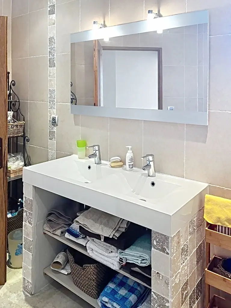 - ROOM n°1 with large double bed (160 cm), TV and its BATHROOM (1 sink; 1 shower, 1 WC)