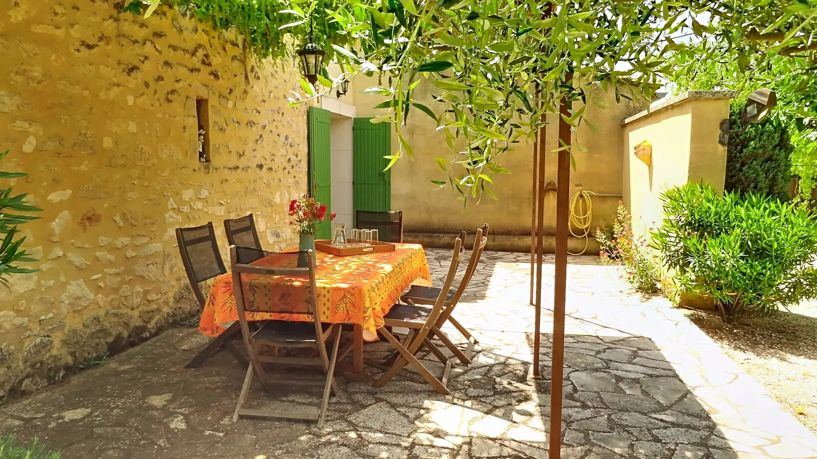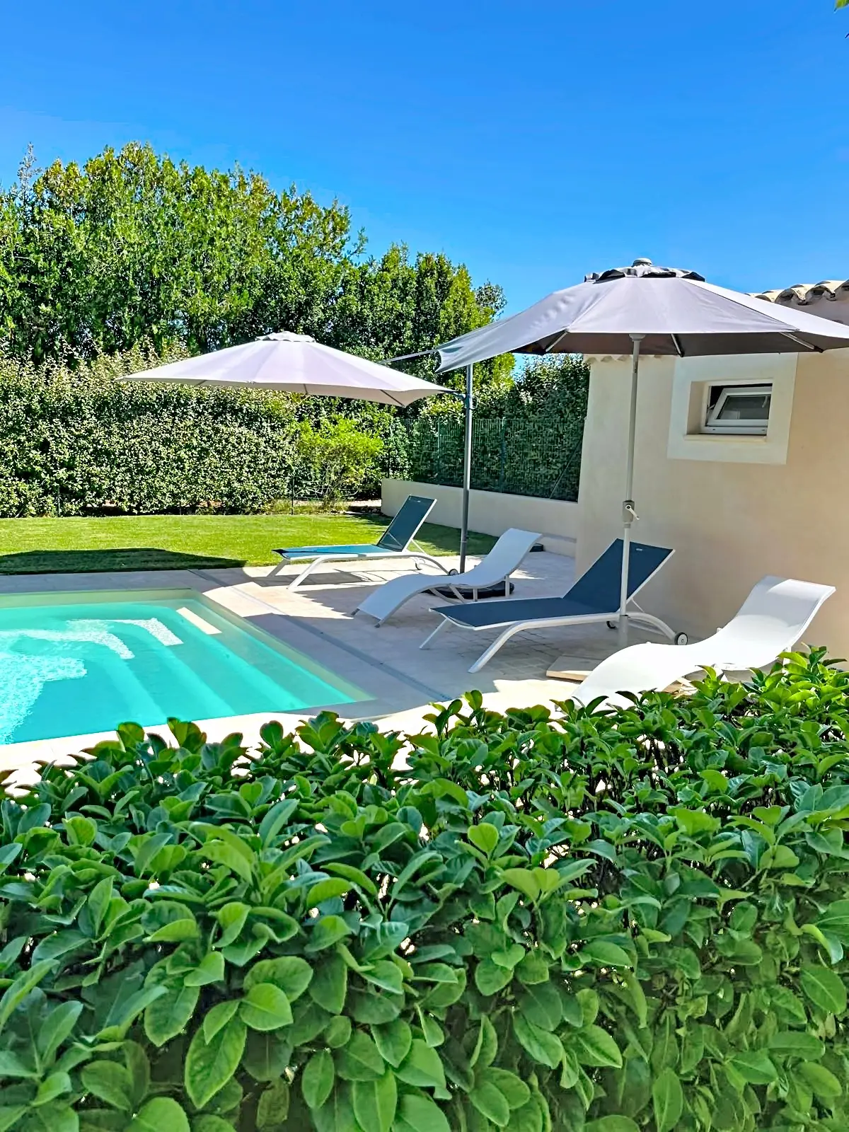 Mas mitoyen avec terrain privatif et piscine privative.