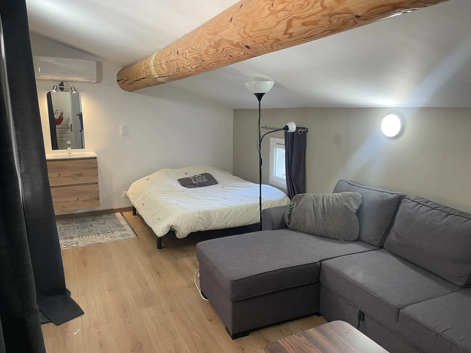 1 grande chambre (suite parentale) avec climatisation et 1 lit double en 140 avec sa salle d'eau (1 vasque 1 douche )