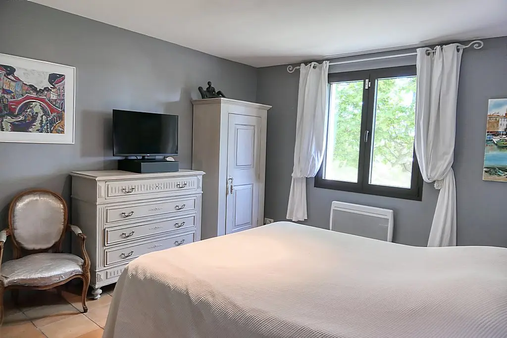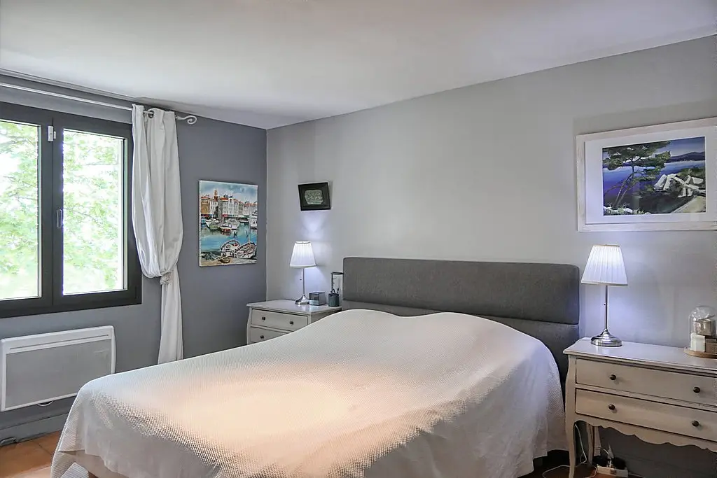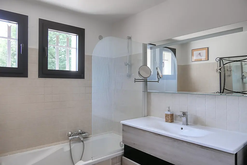 RDC : Cuisine indépendante toute équipée / Buanderie / Salle d’eau : douche, lavabo / Salon/ salle à manger avec climatisation / WC indépendant / Salle de bain : Vasque, baignoire, Douche italienne / Chambre 1 : lit double de 160x200, TV avec chaine Canal +, Climatisation, lit simple (80x200), placard / Chambre 2 : lit double de 140x190, TV, Climatisation, placard