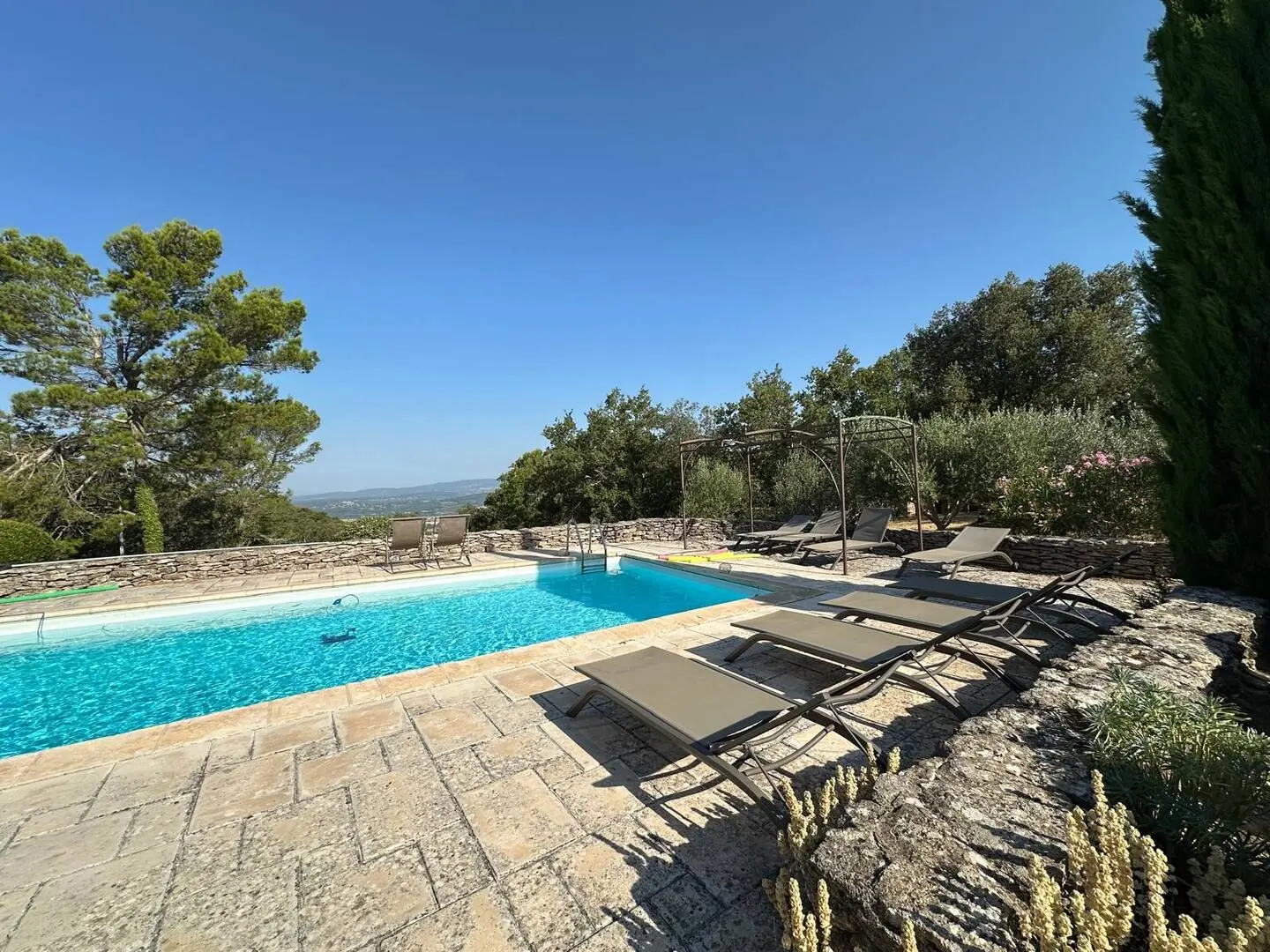 A Bonnieux au cœur du Luberon, magnifique et spacieux mas pour 12 personnes avec vue exceptionnelle, piscine chauffée et terrain de tennis privatif.