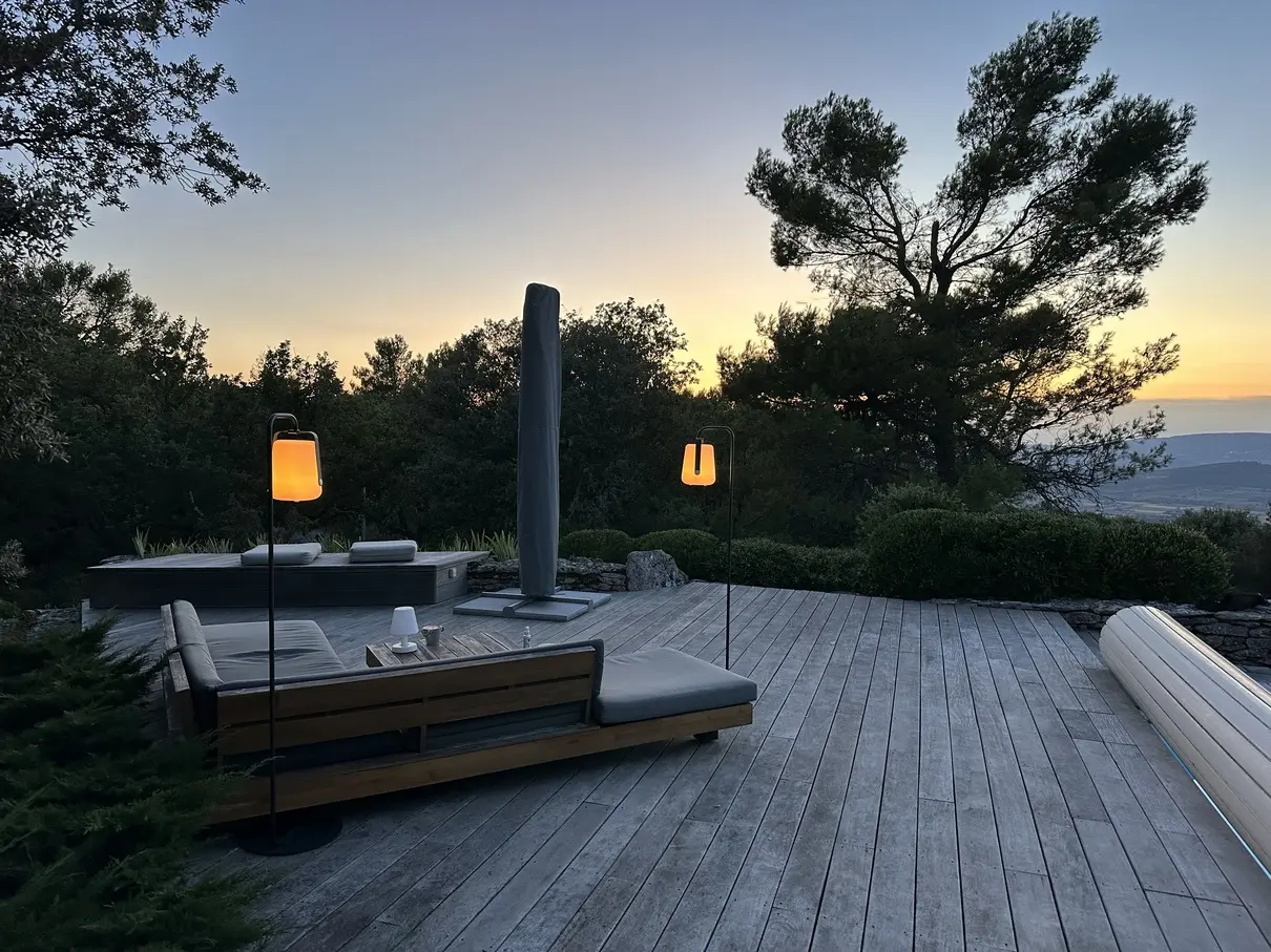 Cette propriété d'exception située au-dessus du magnifique village de Bonnieux s'étant sur 2 hectares de végétation aux senteurs provençales pour vous offrir le calme absolu et une vue à couper le souffle sur la campagne environnante.