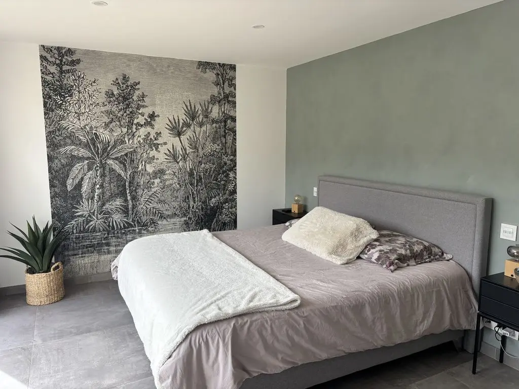 Villa contemporaine de standing pour 10 personnes aux Taillades, à deux pas du centre du village, dans un cadre d’exception avec vue dégagée sur le Luberon. De plain-pied et entièrement climatisée, elle propose 5 chambres confortables et 3 salles d’eau modernes, dont une superbe suite parentale. Les espaces de vie lumineux, avec deux salons et une cuisine américaine entièrement équipée, sont pensés pour la convivialité. À l’extérieur, profitez d’un terrain clos et arboré de 1200 m², de plusieurs terrasses aménagées et d’un patio côté cuisine. La piscine privée chauffée 10x5 m, au sel et sécurisée, s’accompagne d’un poolhouse avec cuisine d’été sous pergola bioclimatique. Équipements haut de gamme, Wi-Fi fibre, barbecue, ping-pong et parking privé complètent l’ensemble. Une villa idéale pour des vacances de standing en Provence, entre confort, calme et proximité des plus beaux villages du Luberon.