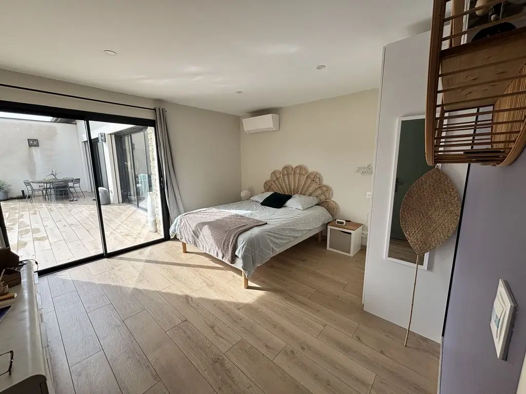 CHAMBRE n°2 avec 1 grand lit double en 160, placards, accès patio