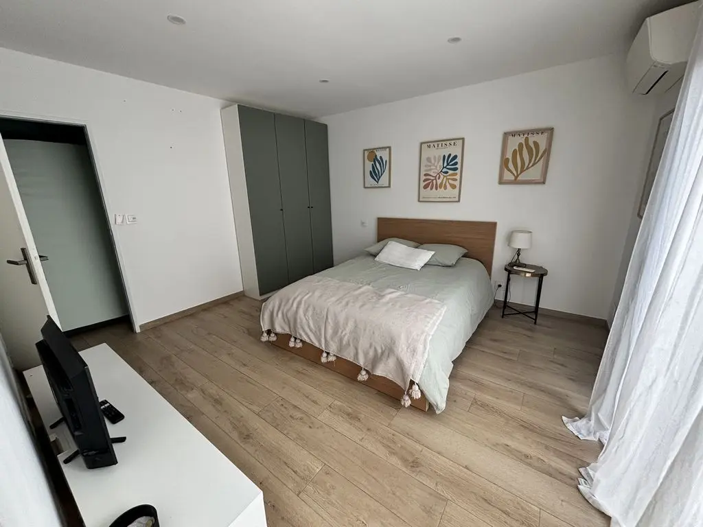 CHAMBRE n°4 avec 1 grand lit double en 160, TV, placards, accès jardin