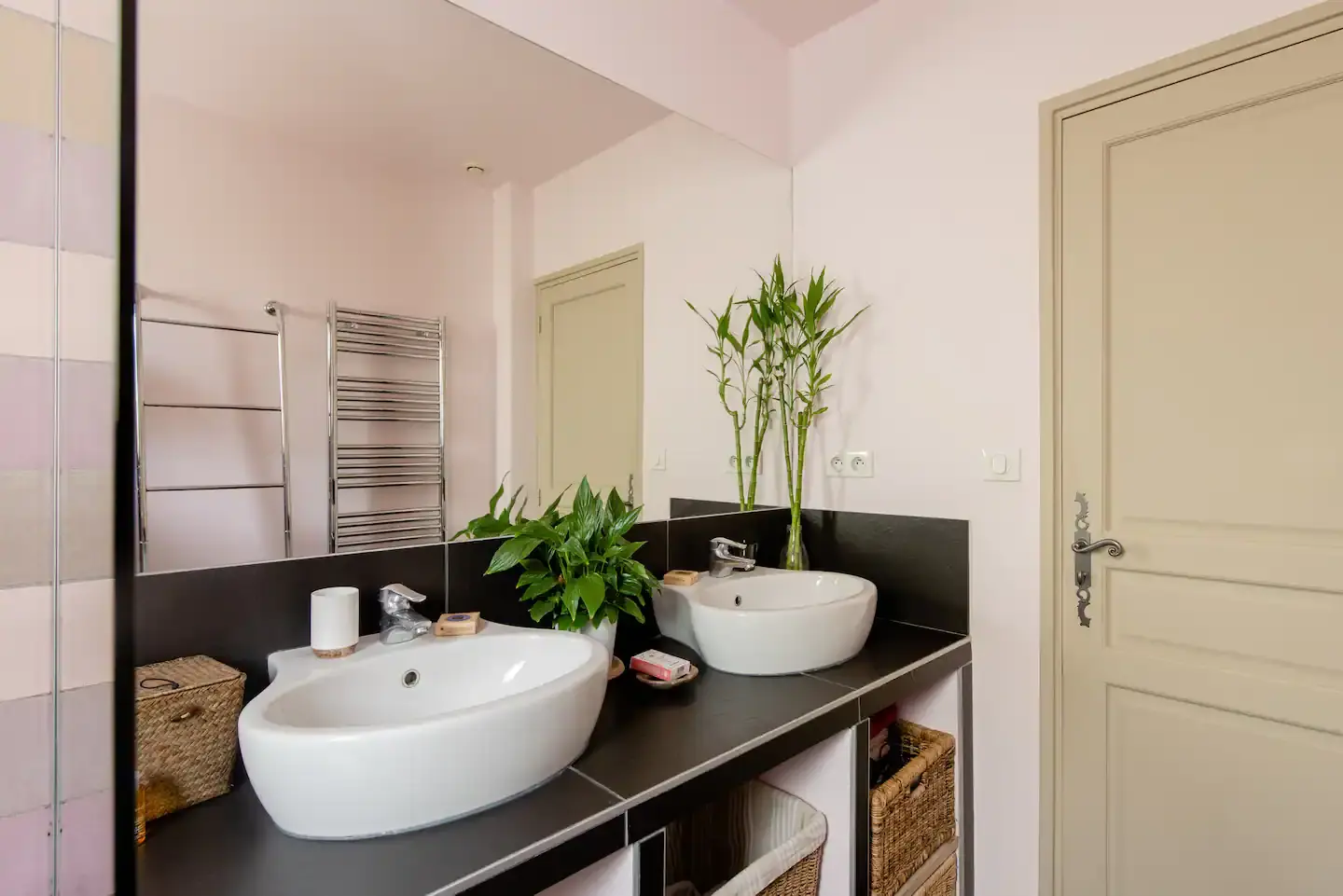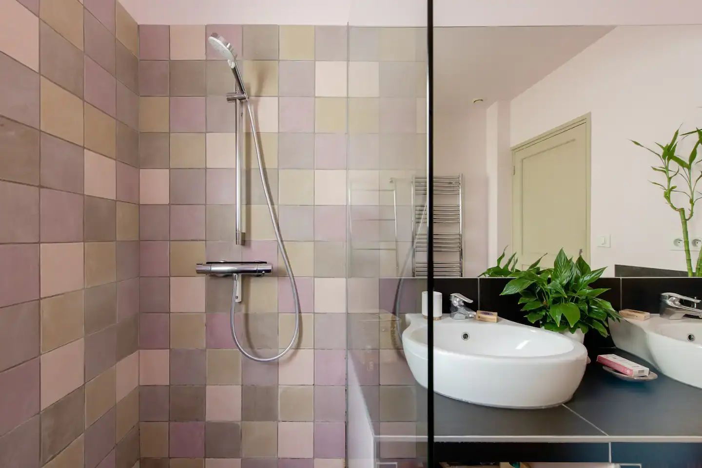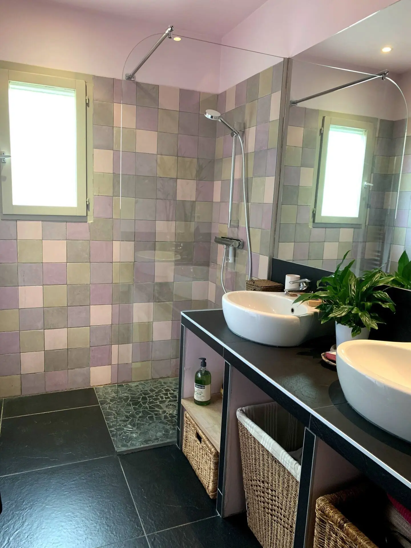 Gedeelde badkamer (2 wastafels, 1 Italiaanse douche)