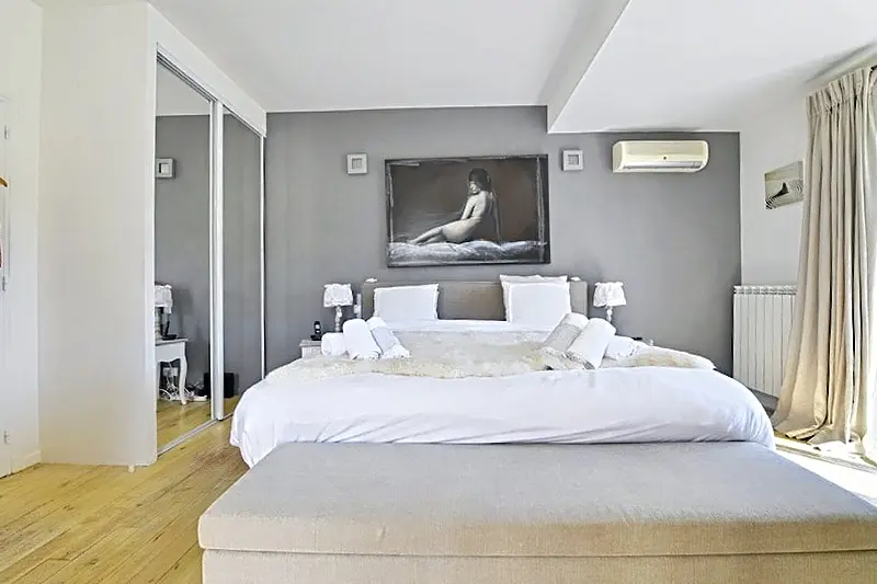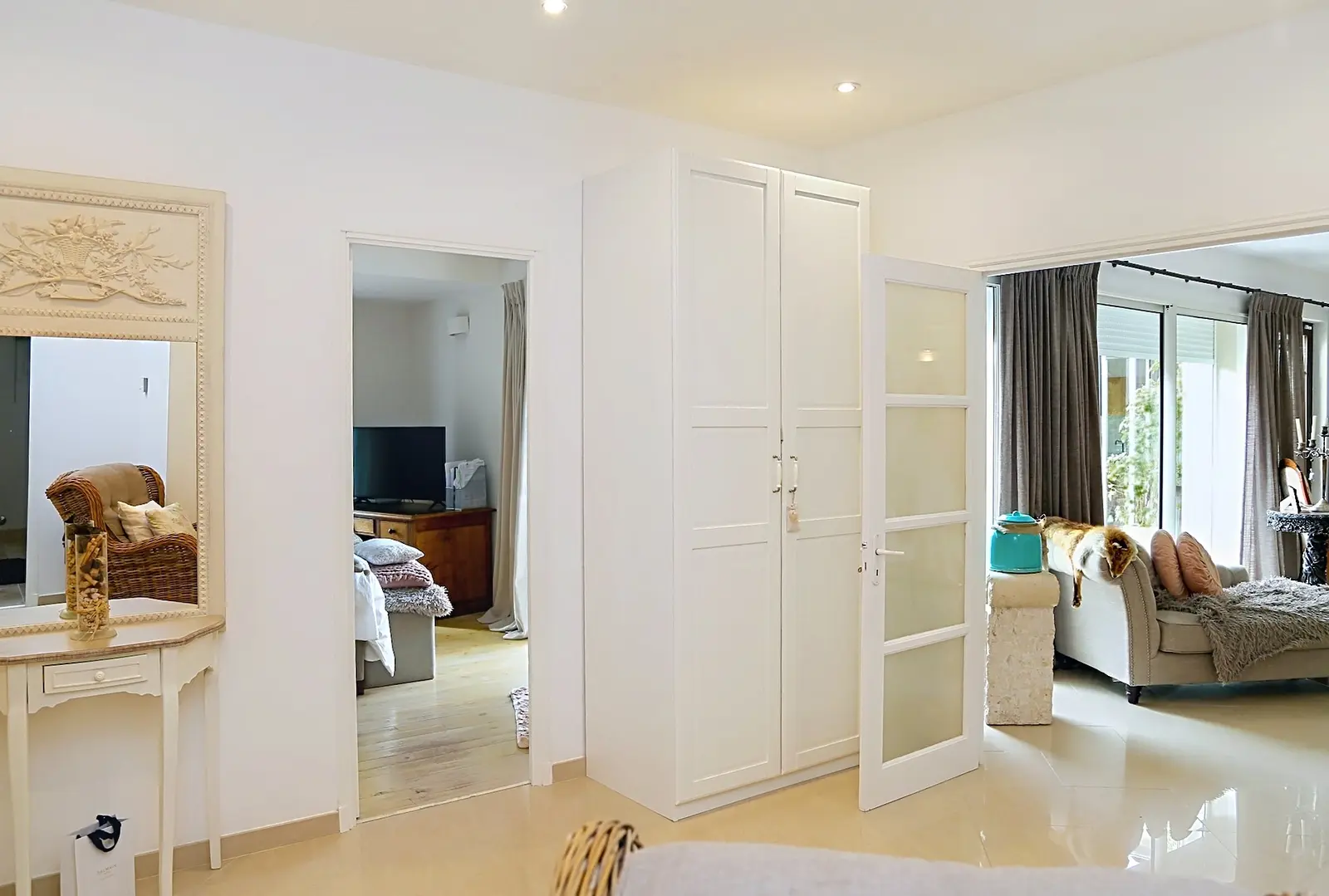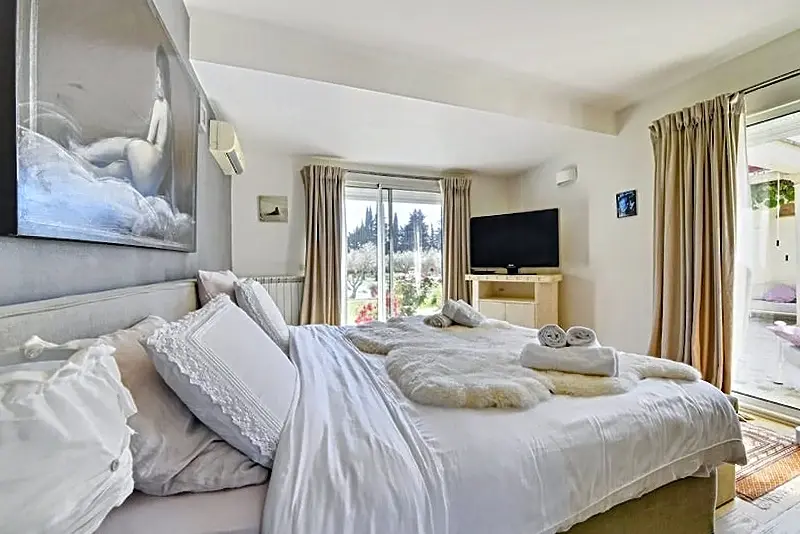 De hoofdsuite beschikt over een kingsize bed (180 cm), airconditioning, een televisie en een ruime kleedkamer.
