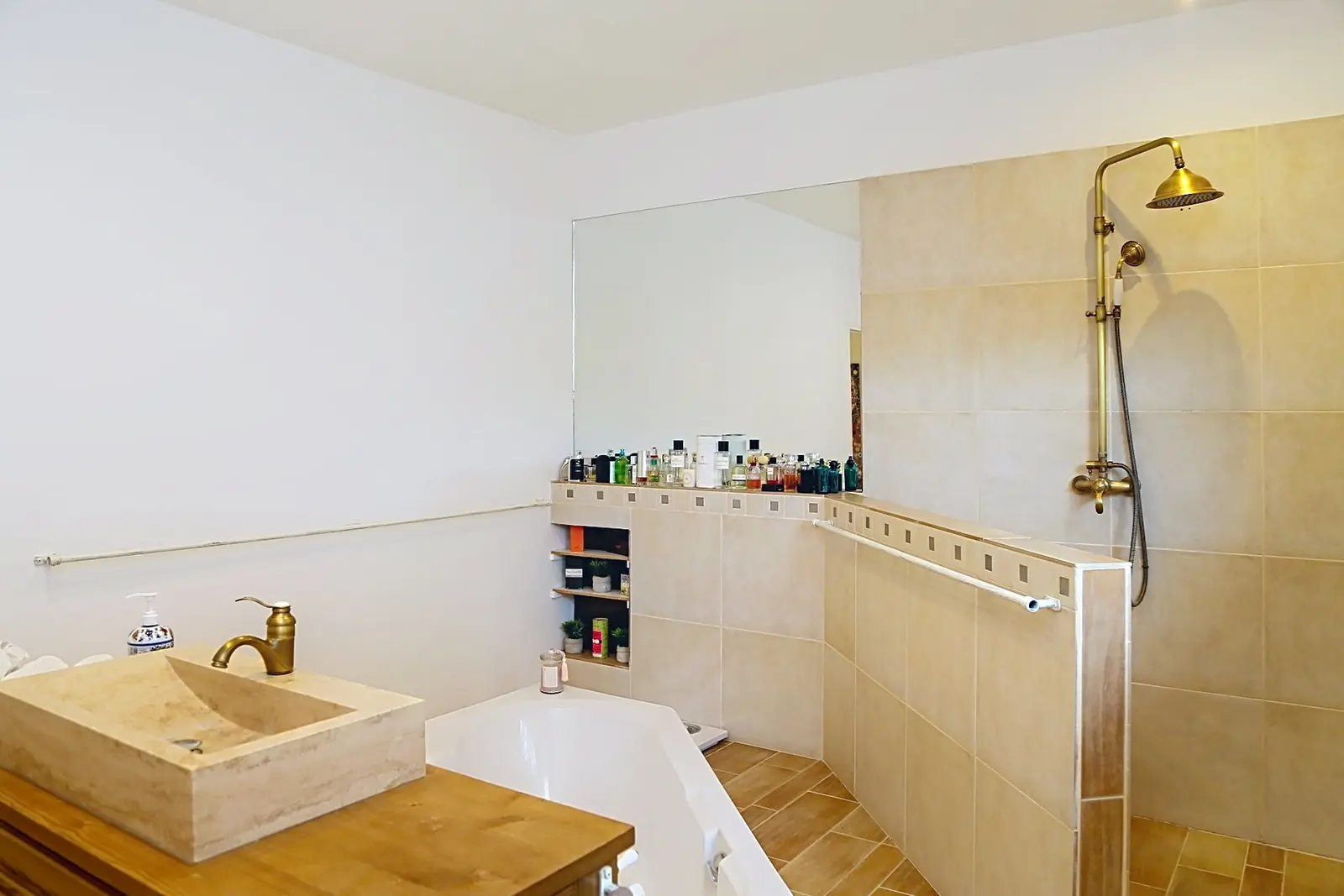 Een complete badkamer met ligbad, douche en toilet completeert de binnenruimte.