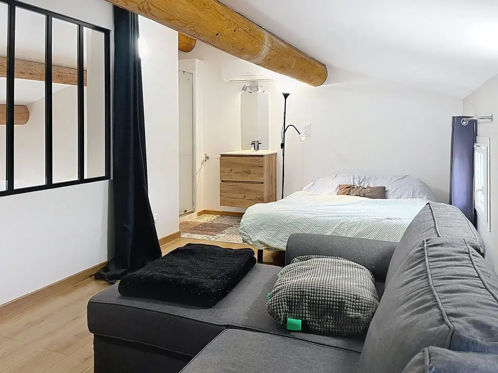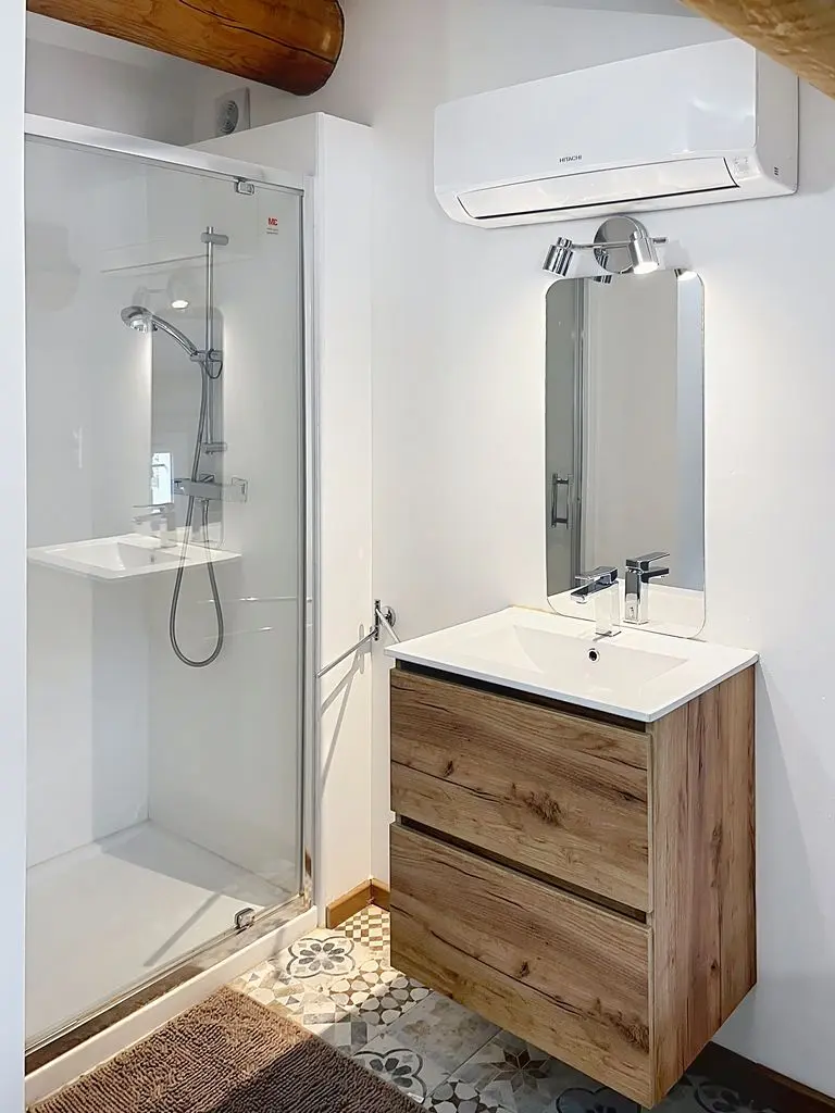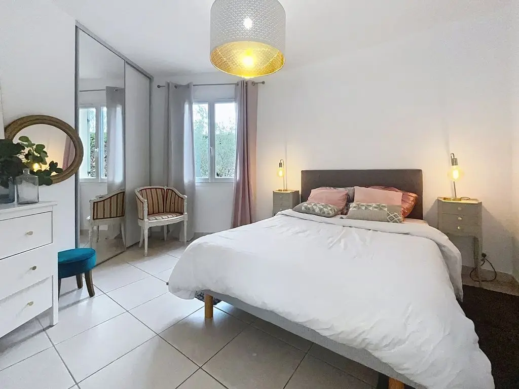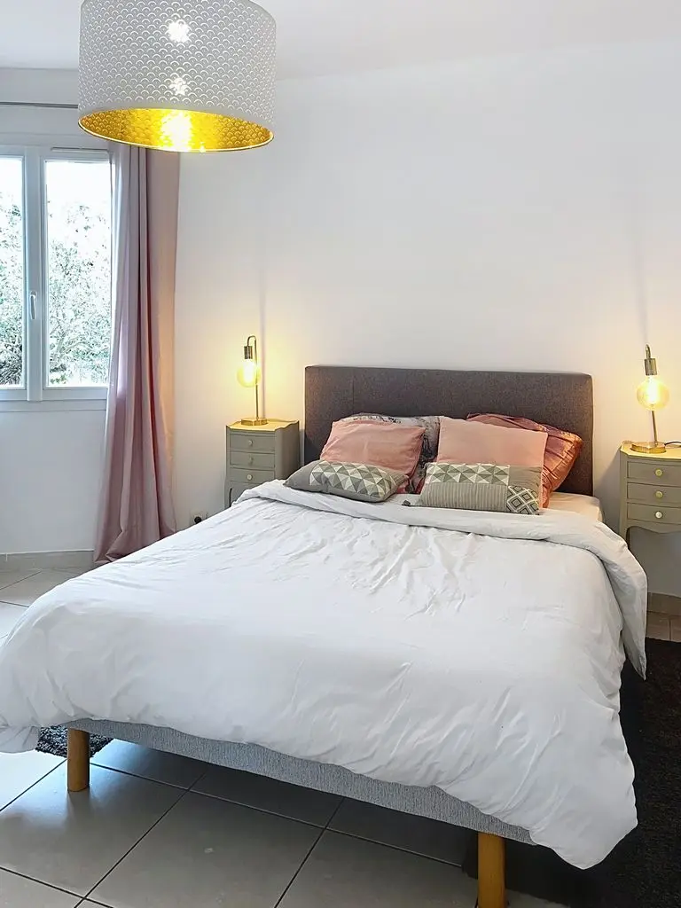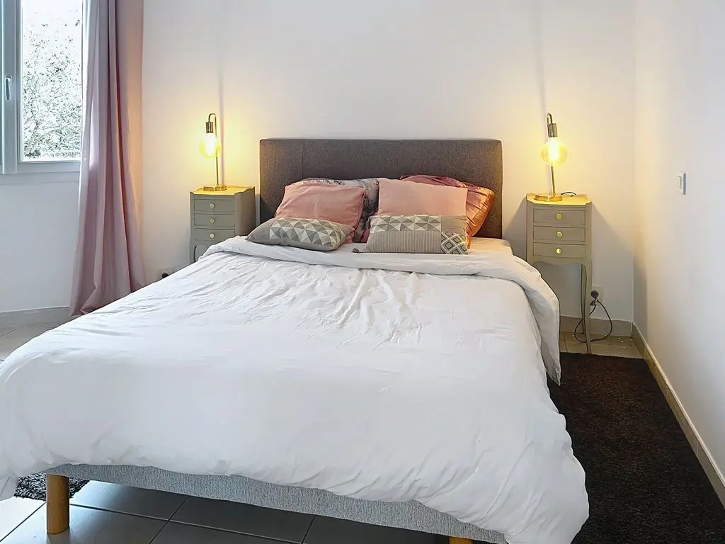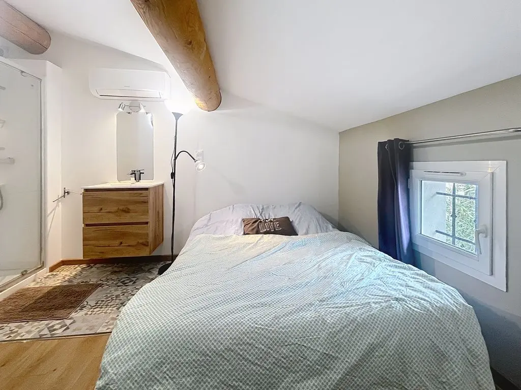 1 grote slaapkamer (master suite) met airconditioning en 1 tweepersoonsbed (140 cm) met eigen badkamer (1 wastafel, 1 douche)