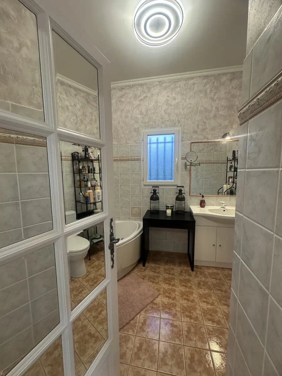 - Slaapkamer 4 met airconditioning en een groot tweepersoonsbed 180x200 of 2 eenpersoonsbedden 90x200, kasten, tv, balkon en eigen badkamer (1 wastafel, 1 bad, 1 toilet)